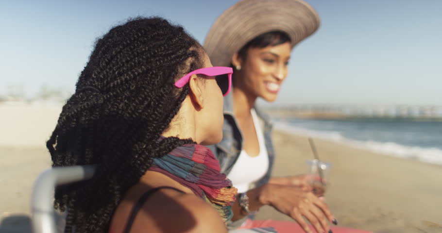 Young Beautiful Black Woman Relaxing At The Beach On Summer