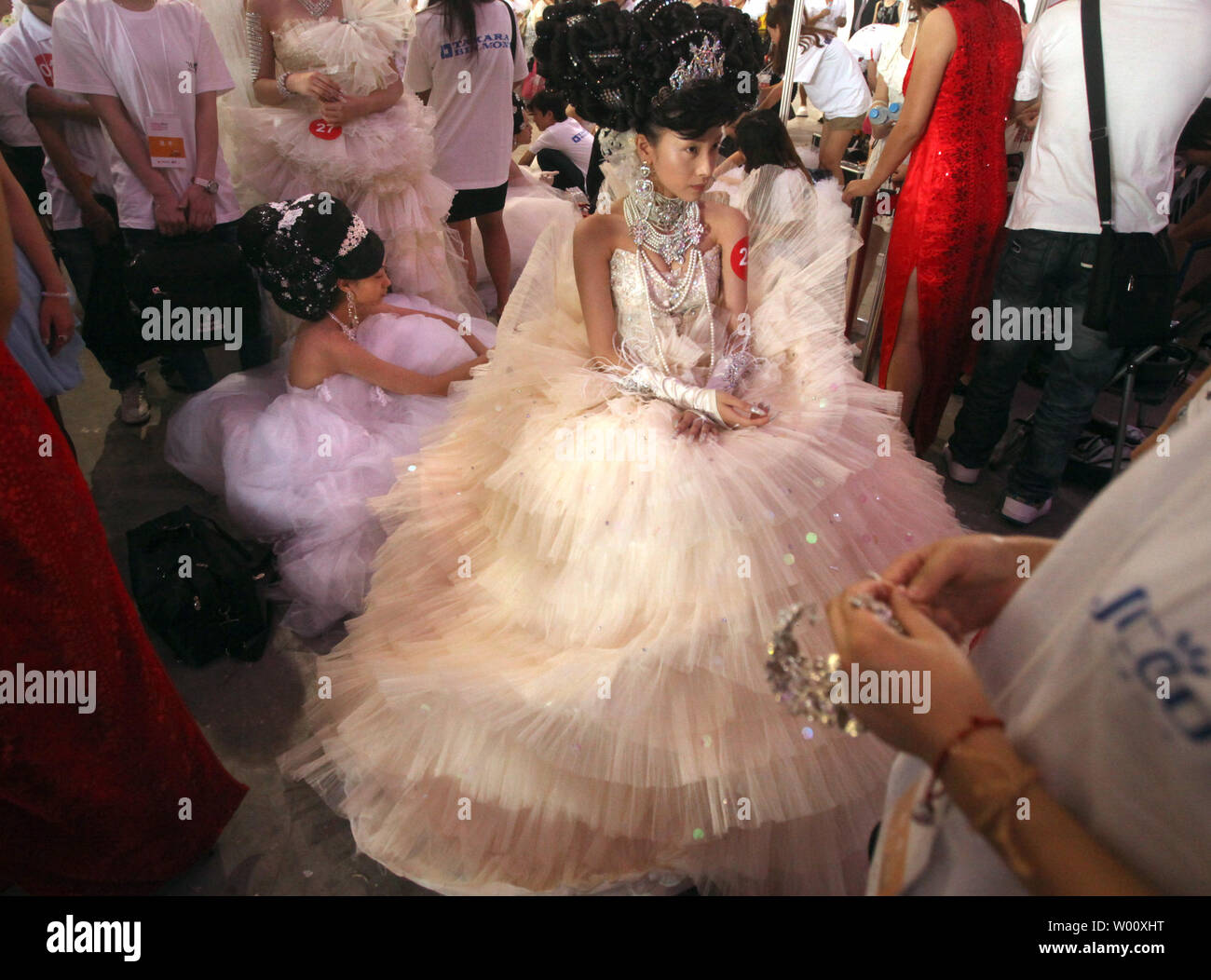 Chinese Models Dressed In Fancy Wedding Gowns And Adorned With