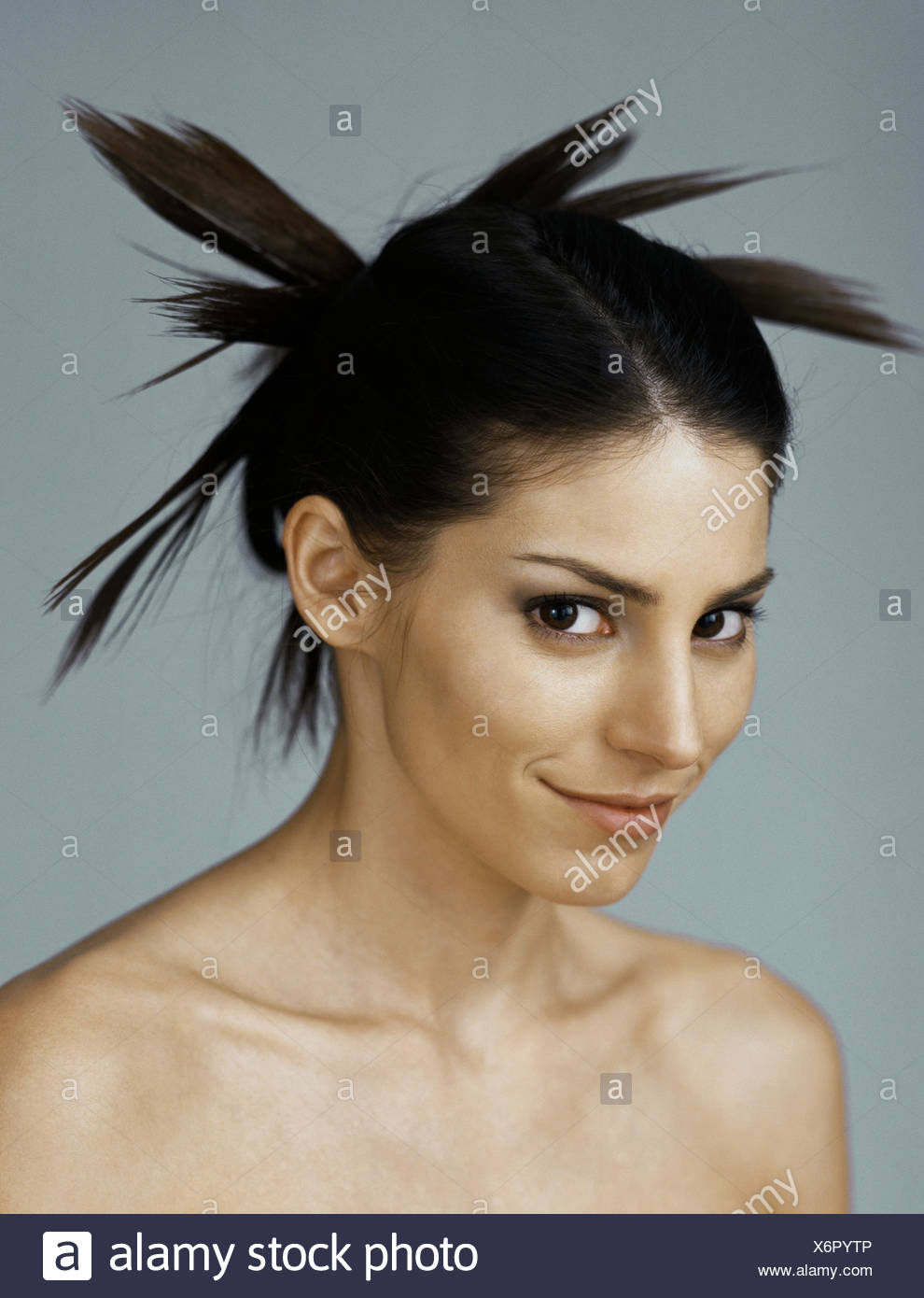 B W Portrait Of A Woman With An Unusual Spiky Hairstyle Stock